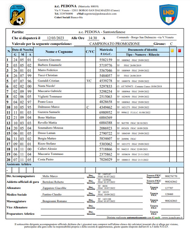 Arbitro: Fabiano Vaglio (Pinerolo)
