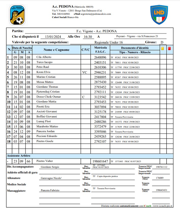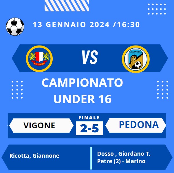 Vigone F.c. vs PEDONA 2-5 (Dosso,Giordano Thomas, Petre, Marino,Petre)