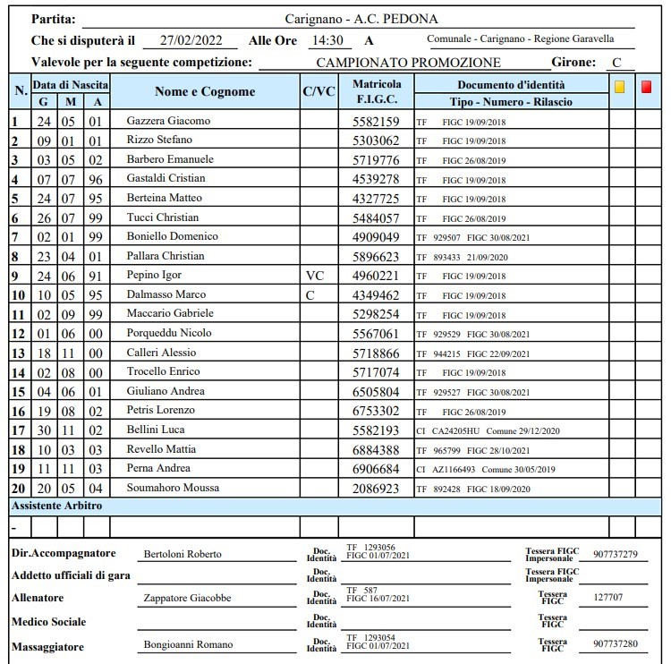 Carignano vs PEDONA 0-2