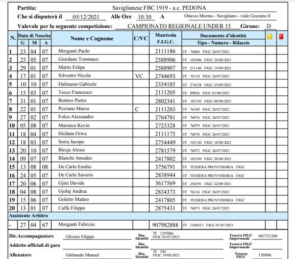 Saviglianese FBC 1919 vs PEDONA 0-1