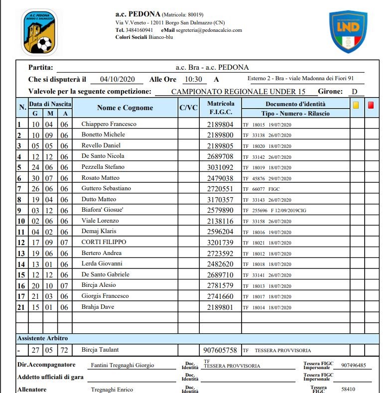 a.c. Bra vs PEDONA 2-0