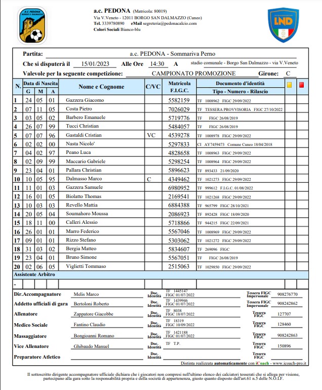 Arbitro: Giacomo Pelosi (Pinerolo)