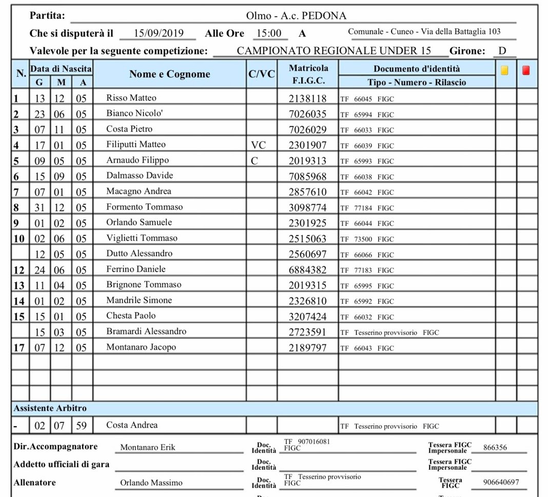 Arbitro: Andrea Raffaele Papa (Cuneo)