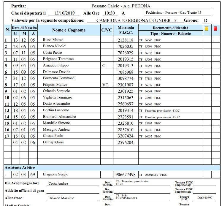 Arbitro:Giovanni Scaffidi (Bra)
