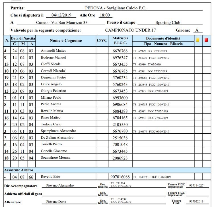 PEDONA vs Savigliano Calcio F.C. 2-3