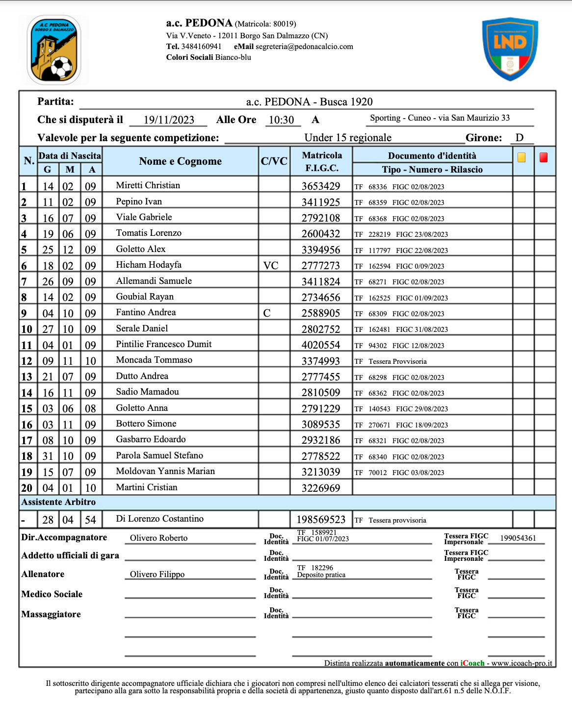 PEDONA vs Busca 1920 2-2 (Goletto Alex, Martini)