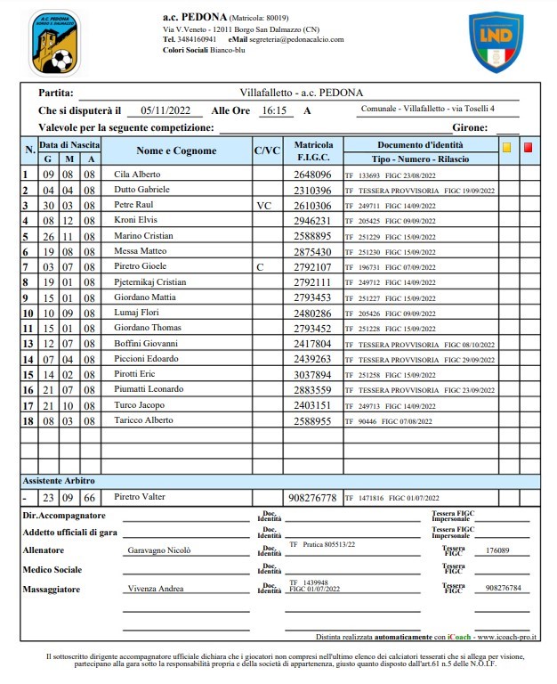 Arbitro: Lorenzo Tudisco (Pinerolo)