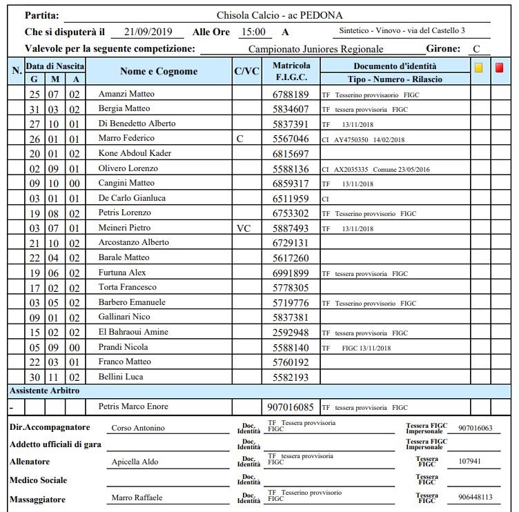 Arbitro: Alberto Ansaldi (Pinerolo)