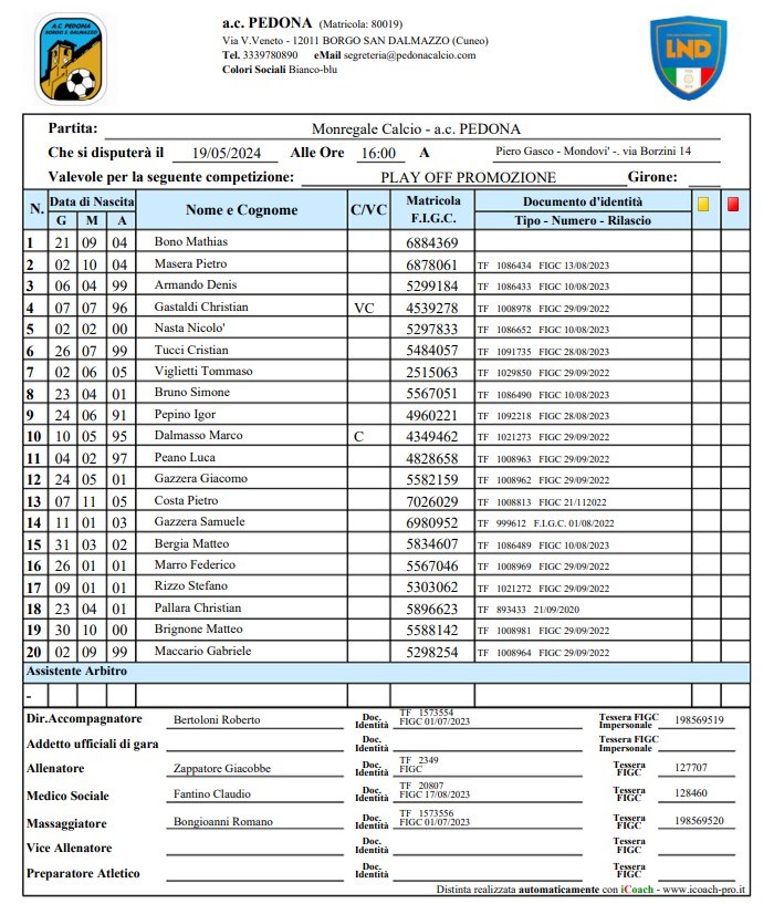 PEDONA vs Caraglio Calcio 3-4