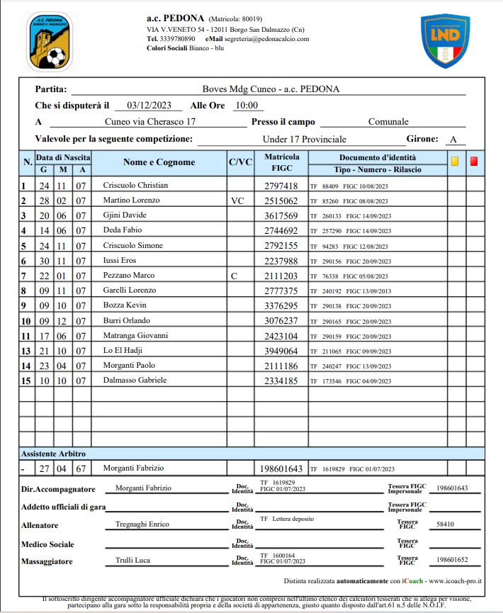 Boves Mdg Cuneo vs PEDONA 2-3 ( autorete, Martino, Deda)