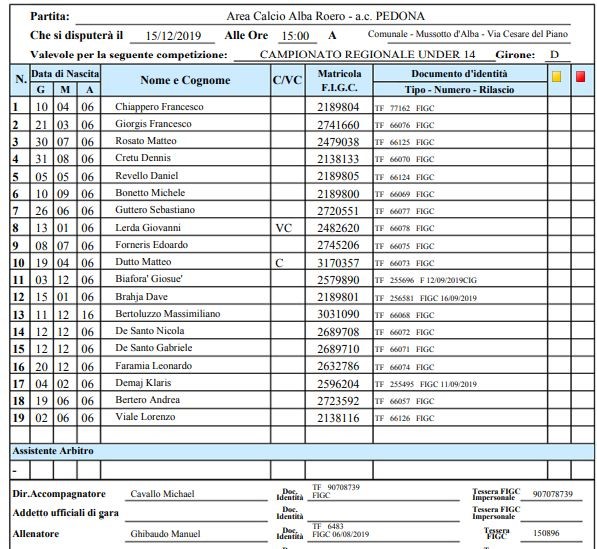 Arbitro: Giovanni Actis-Giorgetto (Bra)