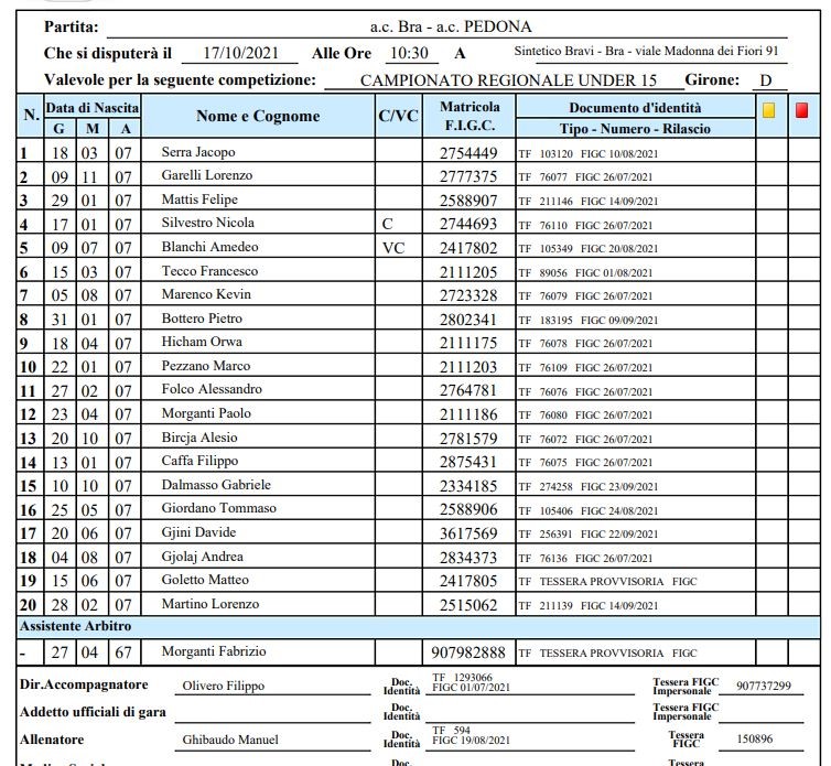 NOTE CAMPIONATO