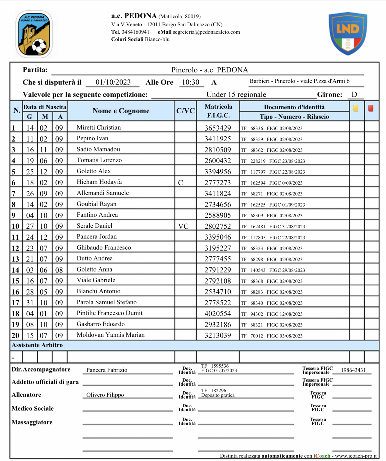 Pinerolo vs PEDONA 2-0