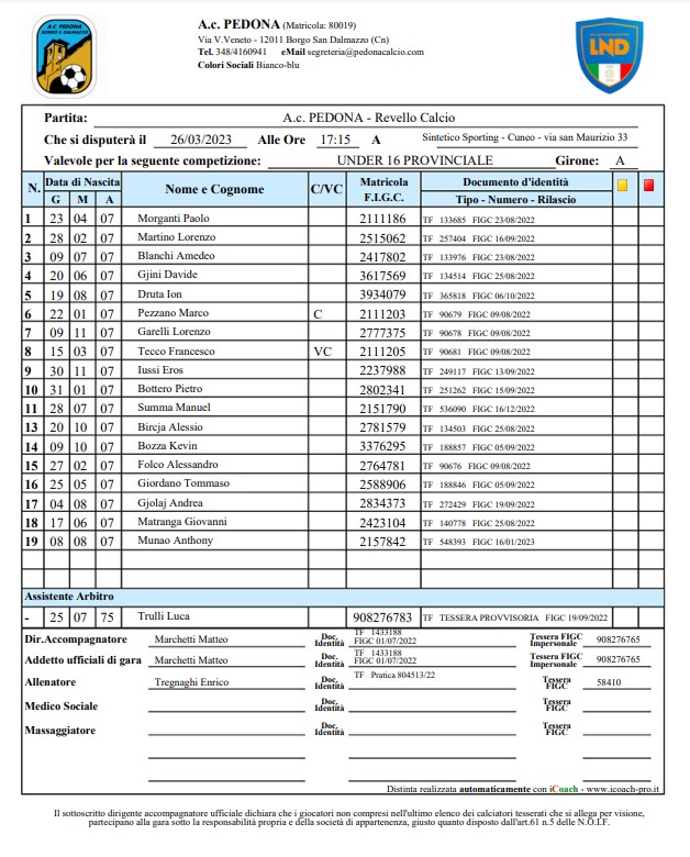PEDONA vs Revello Calcio 0-0