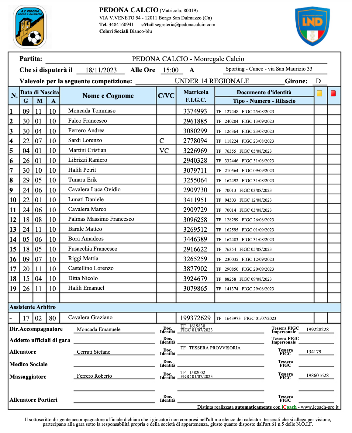 PEDONA vs Monregale Calcio 3-1 (Librizzi,Cavalera Luca,Lunati)