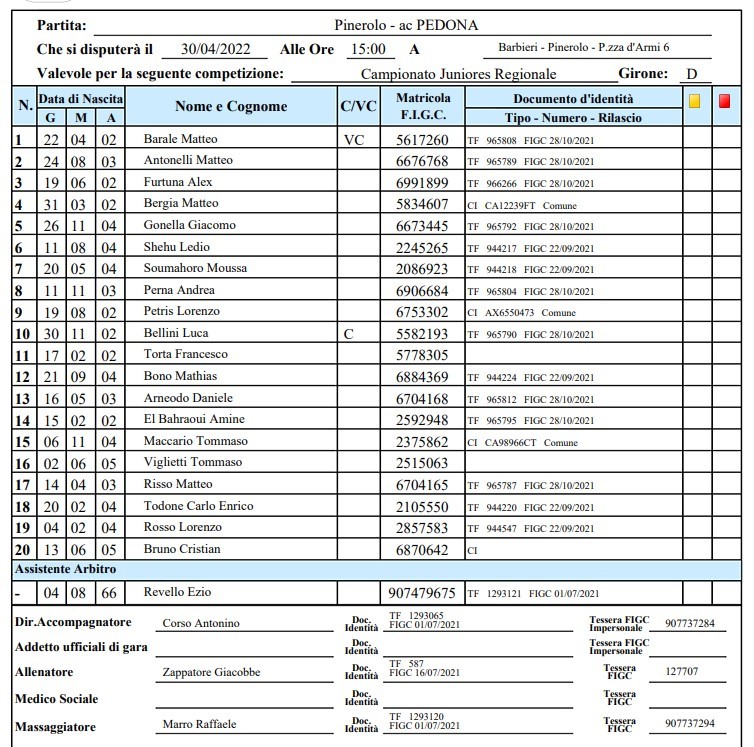 Arbitro: Lorenzo Fossat (Pinerolo)