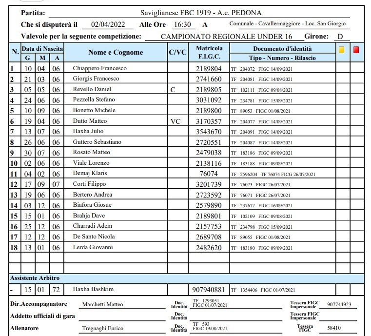 Saviglianese FBC 1919 vs PEDONA 4-0