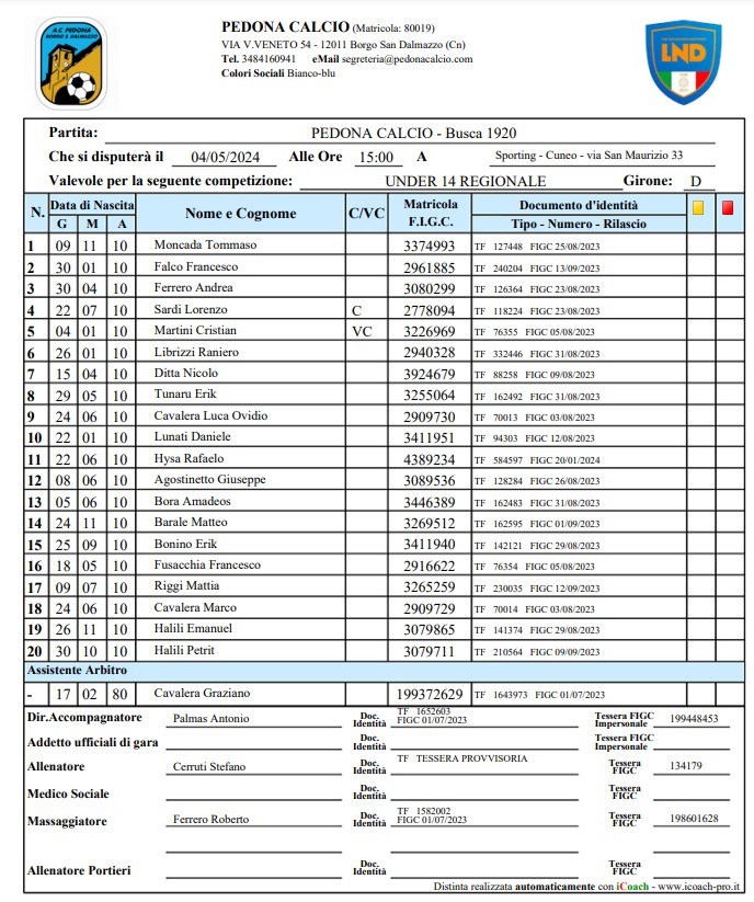 PEDONA vs Busca 1920 1-0 (Cavalera Luca)
