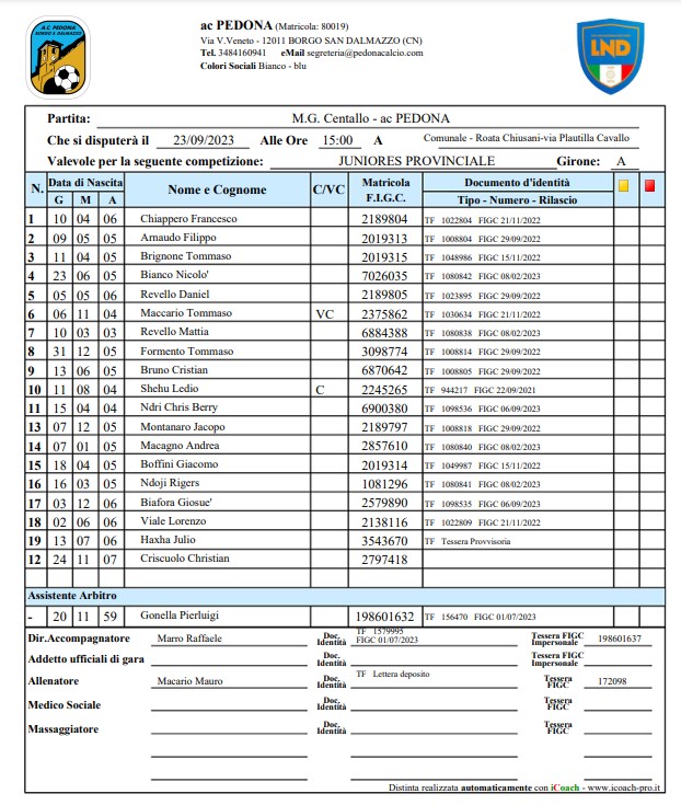 M.G. Centallo vs PEDONA 1-7