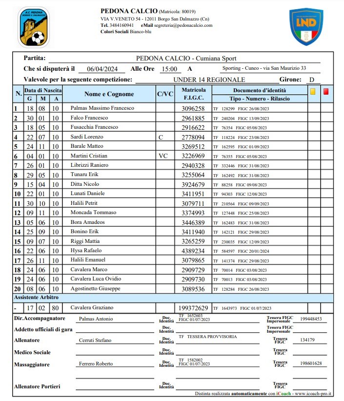 PEDONA vs Cumiana Sport 8-0 (Ditta,Tunaru,autogol,Martini,Librizzi,Tunaru,Ditta,Tunaru)